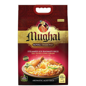 Mughal Royal Diamond Basmati Rice, 10 lbs (4.54 kg), Extra-long grains, Aromatic, Gluten Free, BRC Certified